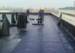 ? ? ? ?高聚物改性瀝青卷材施工,按產(chǎn)品說(shuō)明書(shū)配套使用,基層處理劑是將氯丁橡膠瀝青膠粘劑加入工業(yè)汽油稀釋,攪拌均勻,用長(zhǎng)把滾刷均勻涂刷于基層表面上,常溫經(jīng)過(guò)4小時(shí)后,開(kāi)始鋪貼卷材。